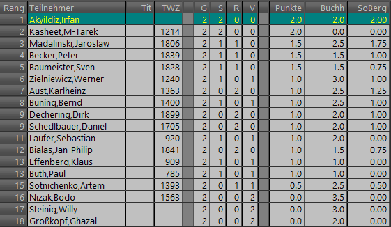 | 7 | 11. | Zielniewicz,Werner | 1,0 | - | 17. | Akyildiz,Irfan | 1,0 | 0 : 1 | |||